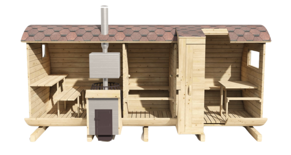 Максимальный комфорт и простор в 5-метровой бане-бочке. Эта баня предназначена для тех, кто ищет идеальное сочетание роскоши и функциональности. На ваш выбор предлагаем двух или трёхсекционную комплектацию. Печь бочка гарантирует быстрый и эффективный прогрев, а система огнезащиты и вентиляции обеспечивает надежность и безопасность. Бак для горячей воды на 55 литров. Электропроводка скрытого монтажа.