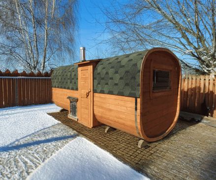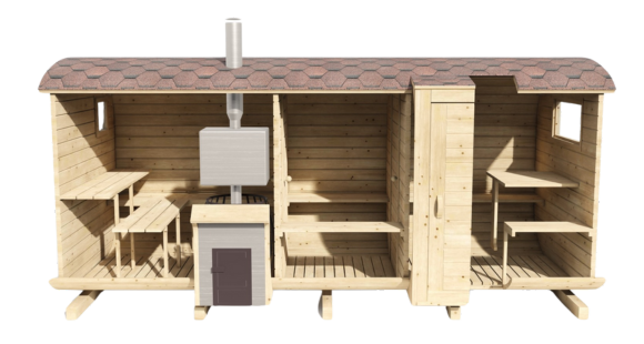 Просторная баня-бочка Квадро с возможностью комфортного размещения от 2 до 6 человек. Кедровая дверь и печь "Бочка" делают помещение уютным, быстро прогревают и сохраняют тепло. Окно обеспечивает хорошее освещение, а благодаря баку на 55 литров всегда есть горячая вода для мытья и пара. Внутри установлены удобные лавки и трапики для дополнительного комфорта. Баня подходит как для семейного, так и для дружеского отдыха, создавая атмосферу тёплой компании и расслабления на природе.