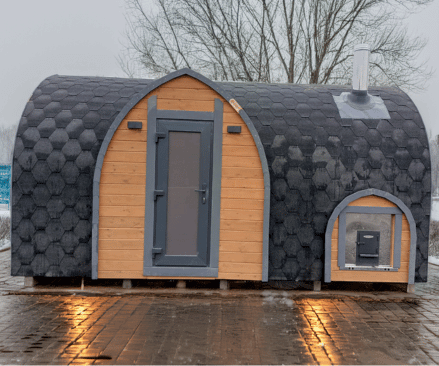 Внутри «Викинга» установлена двухъярусная Г-образная полка, которая обеспечивает удобное размещение в парилке. Печь-бочка с закрытой каменкой равномерно распределяет тепло и позволяет создать качественный пар, а бак из нержавеющей стали на 70 литров обеспечивает постоянный доступ к горячей воде. Для комфорта предусмотрены душевой поддон 900x900 и вместительные рундуки для хранения необходимых вещей.